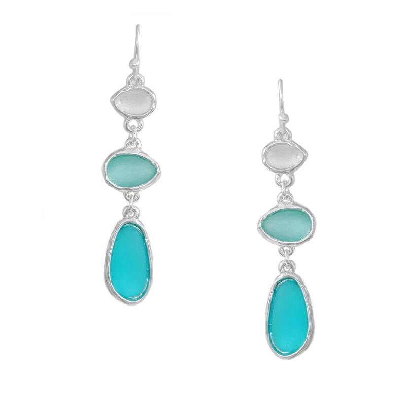 These stunning A Single Strand Three Color Drop Earrings feature a silver base made of durable metal alloy with three drops in ocean-inspired hues, crafted in beautifully irregular shapes. The cascading design captures the essence of the sea, adding a touch of natural elegance and movement to any outfit. Lightweight and versatile, these earrings are perfect for both everyday wear and special occasions, making them a must-have accessory for those who love nature and unique jewelry.