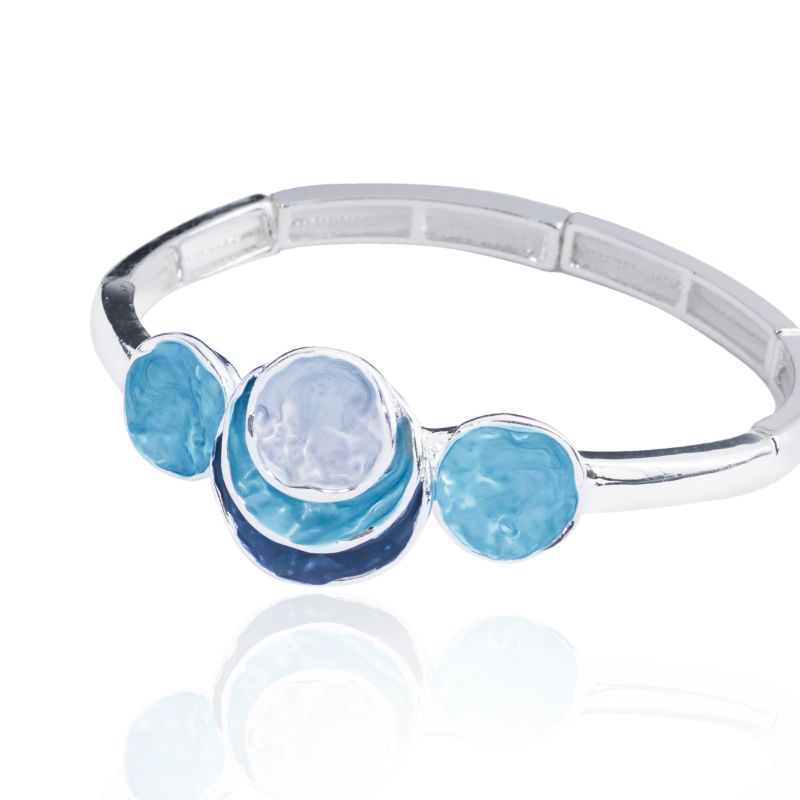 This playful A Single Strand Bubbles Stretch Bracelet features a cluster of bubble accents at its center in enchanting shades of blue, crafted from durable metal alloy with a sleek silver finish. The flexible stretch design provides a comfortable and easy fit, making it perfect for everyday wear. Ideal for adding a splash of color and a fun, ocean-inspired vibe to any outfit, this bracelet is a must-have accessory for those who love unique and vibrant jewelry pieces.