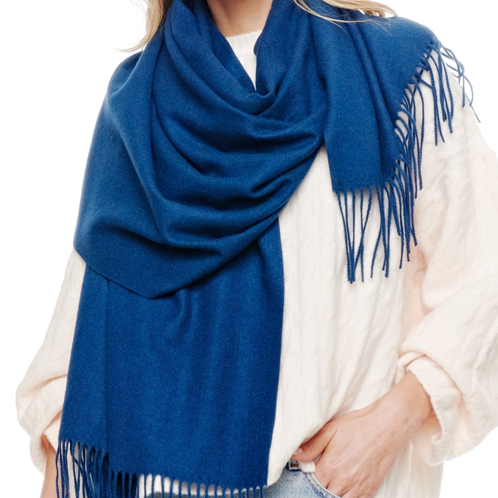 This elegant A Single Strand Cashmere Blend Wrap features an oblong shape with classic fringed edges, adding a sophisticated touch to any outfit. Made from a luxurious cashmere blend, this wrap is soft, warm, and lightweight, offering both comfort and style. The timeless black color makes it effortlessly versatile, perfect for layering over casual ensembles or pairing with evening attire. Ideal for year-round use, it elevates your look with an air of classic elegance and refined appeal.